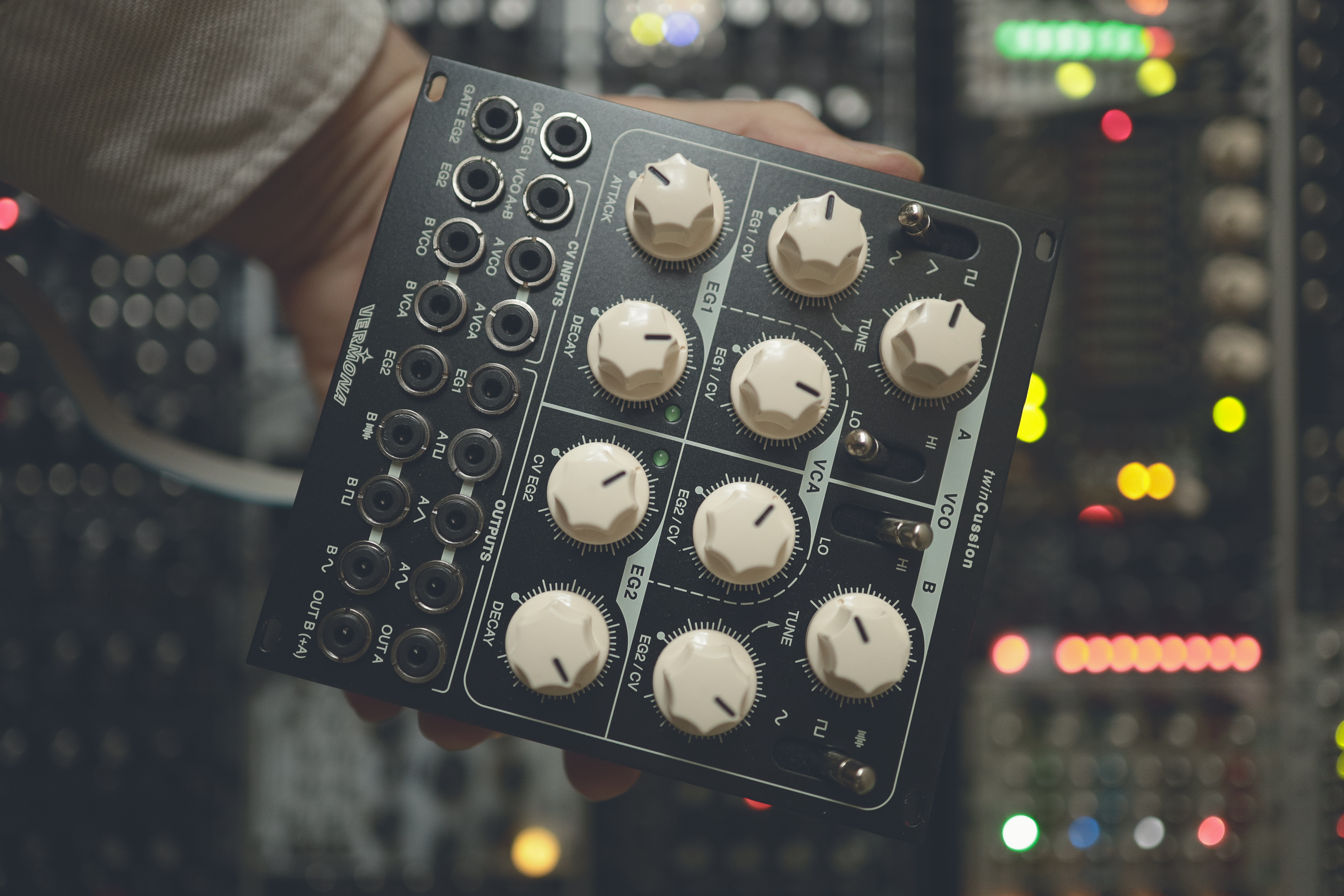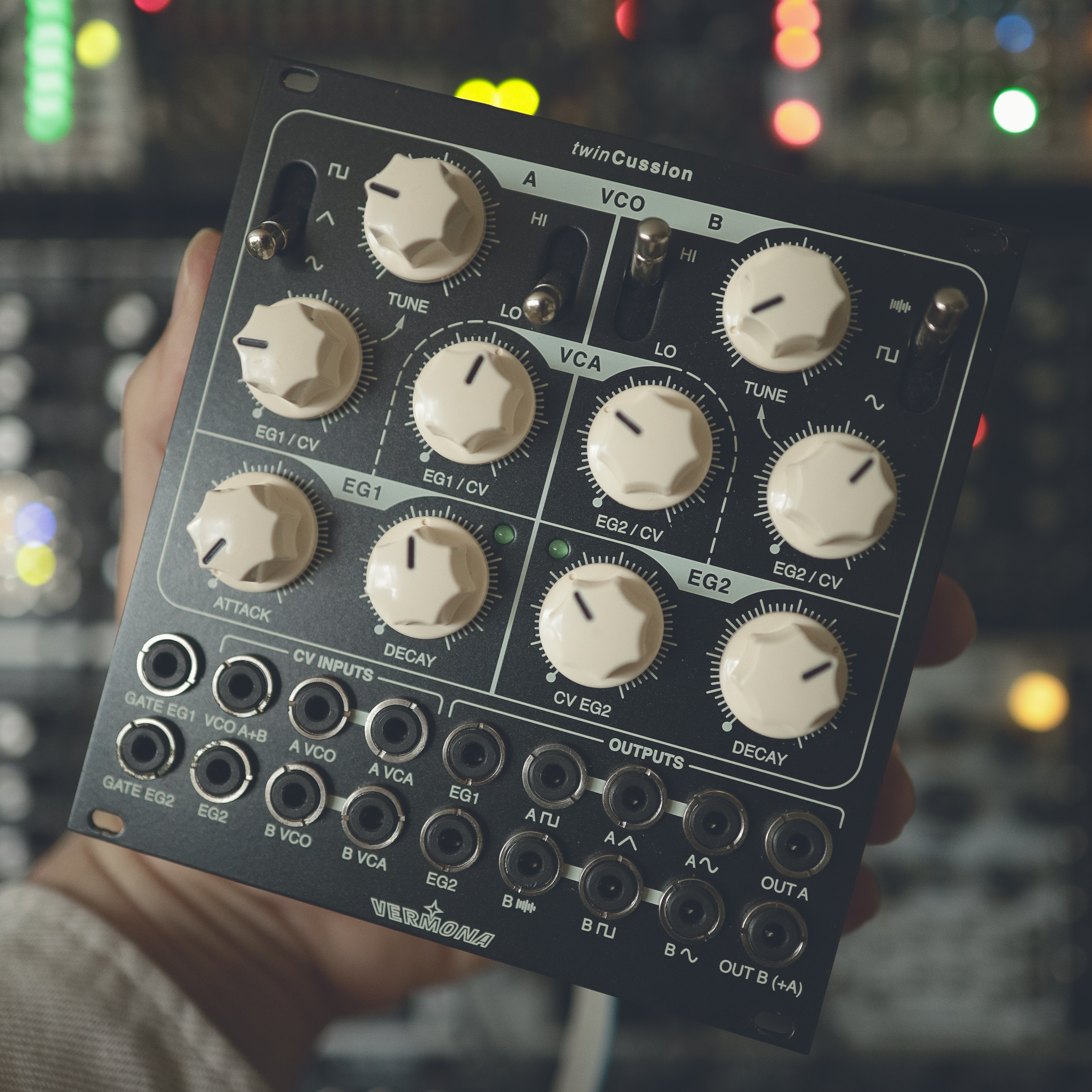 Twin-Cussion ist (natürlich) ein vollständig analoges Drum-Modul aus dem renomierten Hause VERMONA, mit deutlicher Anlehnung an den überaus beliebten 808 Klang von Roland.